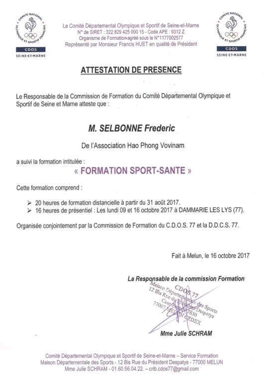 Label santé et nutrition validé par le CDOS 77 et la DDCS 77