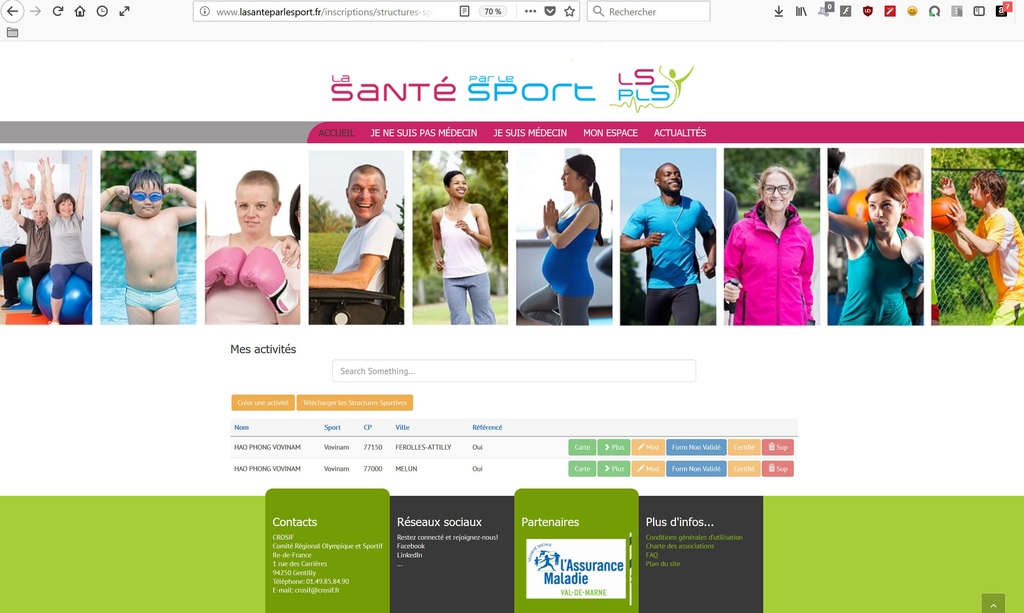 Notre associations est reconnue comme faisant parti des structures dispensant des activités physiques adaptées pour les personnes en affection de longue durée, et/ou souffrant d'hypertensionarterielle, et/ou d'obésité.